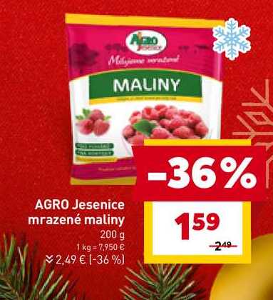 Aktuálnu zľavu na AGRO Jesenice mrazené maliny 200 g zistíte jednoducho nastavením Strážca zliav .