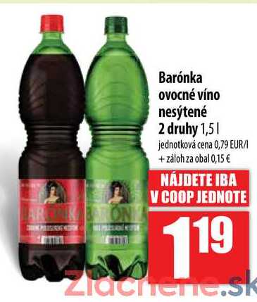 Aktuálnu zľavu na Barónka ovocné víno nesýtené 2 druhy 1,5 l zistíte jednoducho nastavením Strážca zliav .