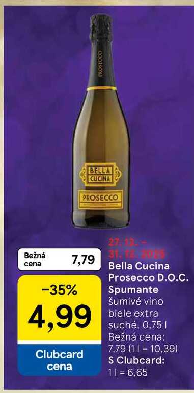 Aktuálnu zľavu na Bella Cucina Prosecco D.O.C. Spumante šumivé víno biele extra suché, 0.75l zistíte jednoducho nastavením Strážca zliav .