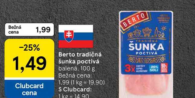 Aktuálnu zľavu na Berto tradičná šunka poctivá balená, 100 g zistíte jednoducho nastavením Strážca zliav .