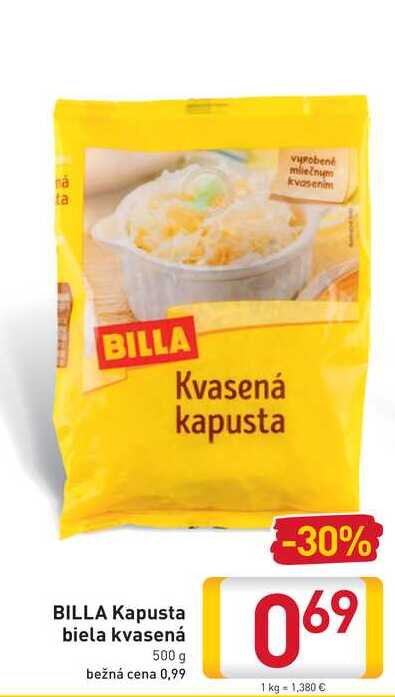 Aktuálnu zľavu na BILLA Kapusta biela kvasená 500 g zistíte jednoducho nastavením Strážca zliav .