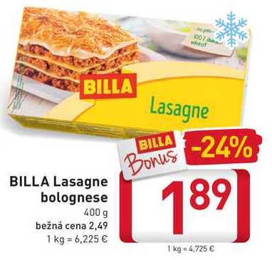 Aktuálnu zľavu na BILLA Lasagne bolognese 400 g zistíte jednoducho nastavením Strážca zliav .