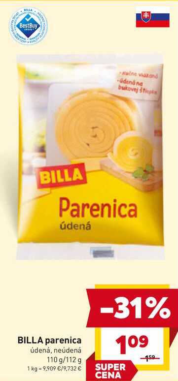 Aktuálnu zľavu na BILLA parenica údená, neúdená 110 g/112 g zistíte jednoducho nastavením Strážca zliav .