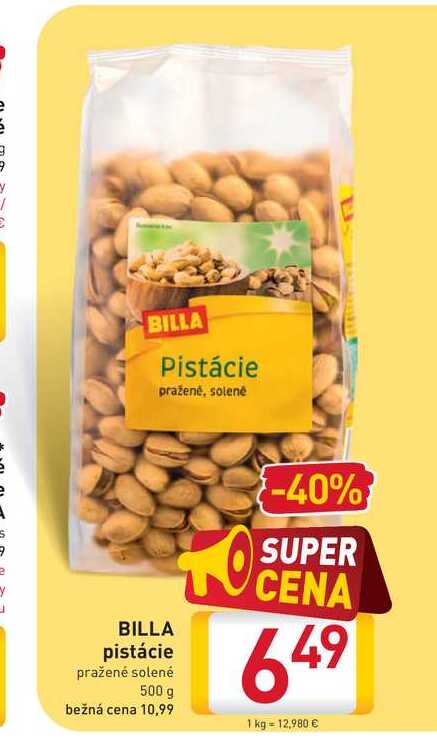 Aktuálnu zľavu na BILLA pistácie pražené solené 500 g zistíte jednoducho nastavením Strážca zliav .