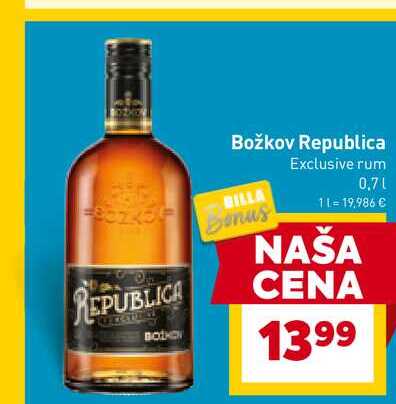 Aktuálnu zľavu na Božkov Republica Exclusive rum 0,7l zistíte jednoducho nastavením Strážca zliav .