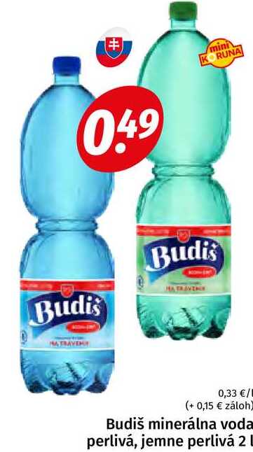 Budiš minerálna voda perlivá, jemne perlivá 2 l