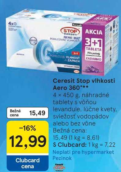Aktuálnu zľavu na Ceresit Stop vlhkosti Aero 360°, 4x 450 g zistíte jednoducho nastavením Strážca zliav .