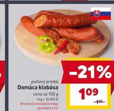 Aktuálnu zľavu na Domáca klobása cena za 100 g zistíte jednoducho nastavením Strážca zliav .