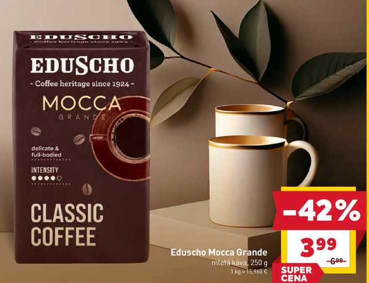 Aktuálnu zľavu na Eduscho Mocca Grande mletá káva, 250 g zistíte jednoducho nastavením Strážca zliav .