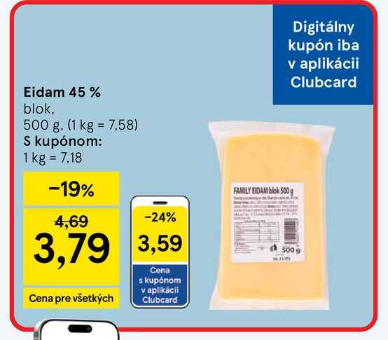 Aktuálnu zľavu na Eidam 45% blok 500 g zistíte jednoducho nastavením Strážca zliav .