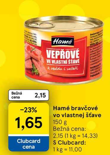 Hamé bravčové vo vlastnej šťave 150g