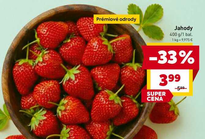 Aktuálnu zľavu na Jahody 400 g/1 bal. zistíte jednoducho nastavením Strážca zliav .