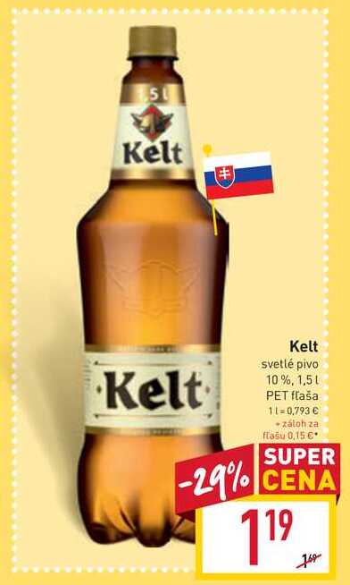 Aktuálnu zľavu na Kelt svetlé pivo 10% 1,5 l zistíte jednoducho nastavením Strážca zliav .