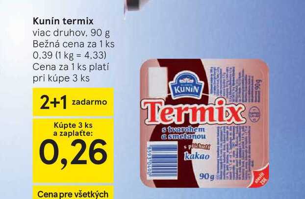 Aktuálnu zľavu na Kunín termix viac druhov, 90 g zistíte jednoducho nastavením Strážca zliav .