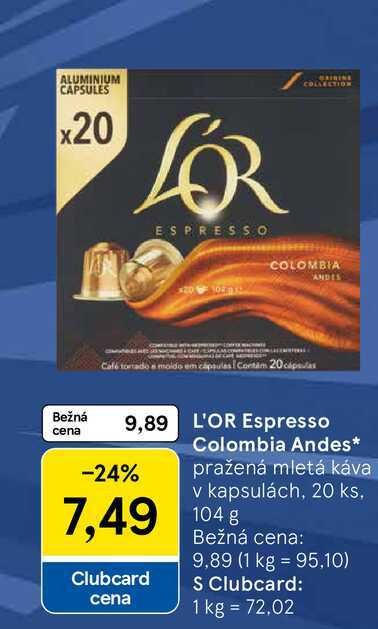 Aktuálnu zľavu na L'OR Espresso Colombia Andes pražená mletá káva v kapsulách, 20 ks zistíte jednoducho nastavením Strážca zliav .