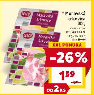 Aktuálnu zľavu na LE&CO Moravská krkovica 100 g zistíte jednoducho nastavením Strážca zliav .