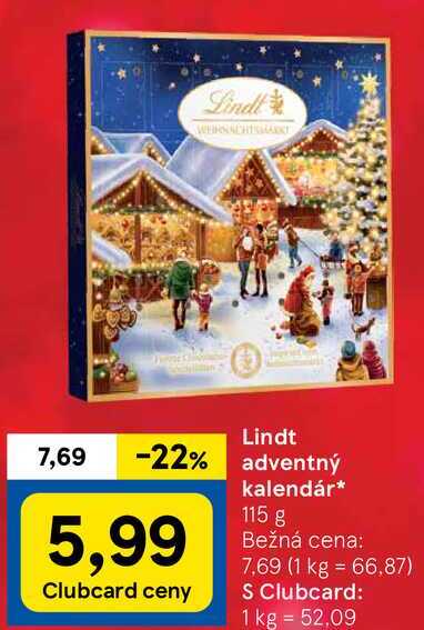 Lindt adventný kalendár, 115 g