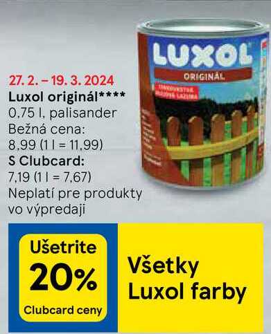 Aktuálnu zľavu na Luxol originál, 0,75 l zistíte jednoducho nastavením Strážca zliav .