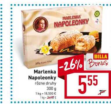 Aktuálnu zľavu na Marlenka Napoleonky rôzne druhy 300 g zistíte jednoducho nastavením Strážca zliav .