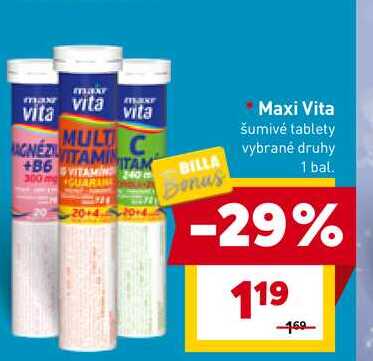 Aktuálnu zľavu na Maxi Vita šumivé tablety vybrané druhy 1 bal. zistíte jednoducho nastavením Strážca zliav .