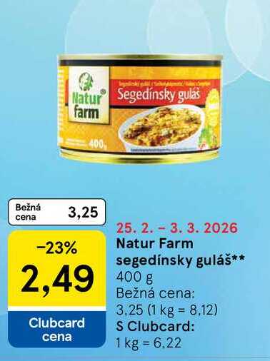 Aktuálnu zľavu na Natur Farm segedínsky guláš 400g zistíte jednoducho nastavením Strážca zliav .