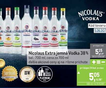 Aktuálnu zľavu na Nicolaus Extra jemná Vodka 38% 5,5 bal.: 700 ml zistíte jednoducho nastavením Strážca zliav .