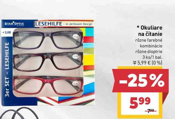 Aktuálnu zľavu na Okuliare na čítanie rôzne farebné kombinácie rôzne dioptrie 3ks zistíte jednoducho nastavením Strážca zliav .