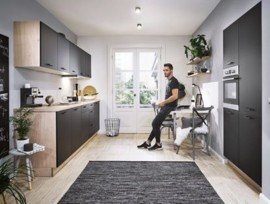 dekor čierna matná, čierne kovové úchyty, bez spotrebičov a drezu, rozmer:120+300 cm 1.899,- (18710871/01)
