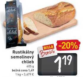 Aktuálnu zľavu na Rustikálny semolinový chlieb 405 g zistíte jednoducho nastavením Strážca zliav .