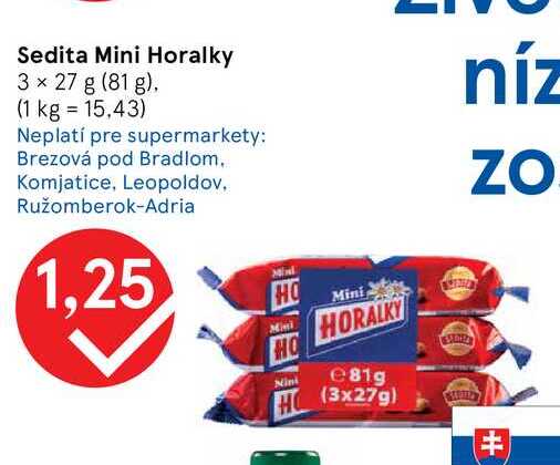 Aktuálnu zľavu na Sedita Mini Horalky 3 × 27 g zistíte jednoducho nastavením Strážca zliav .