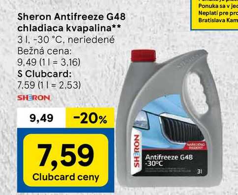 Aktuálnu zľavu na Sheron Antifreeze G48 chladiaca kvapalina, 3 l zistíte jednoducho nastavením Strážca zliav .