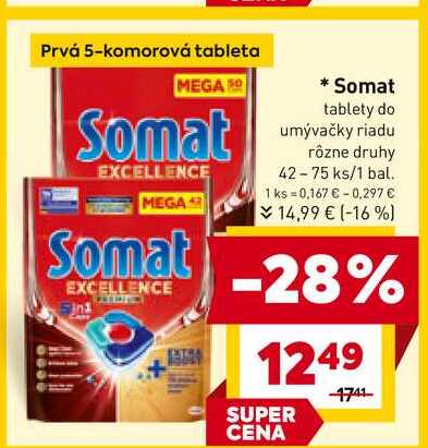 Aktuálnu zľavu na Somat tablety do umývačky riadu rôzne druhy 42-75 ks/1 bal. zistíte jednoducho nastavením Strážca zliav .