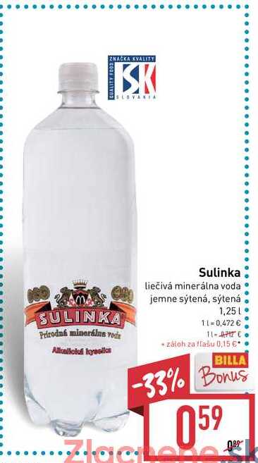 Aktuálnu zľavu na Sulinka liečivá minerálna voda 1,25 l zistíte jednoducho nastavením Strážca zliav .