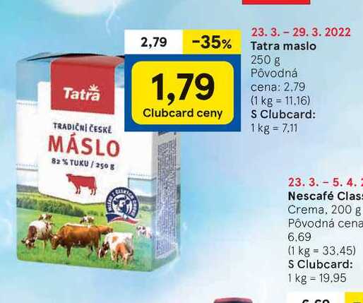 Aktuálnu zľavu na Tatra maslo, 250 g zistíte jednoducho nastavením Strážca zliav .