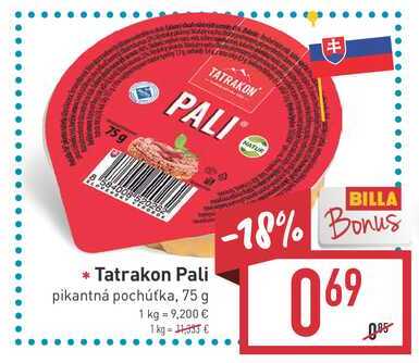 Aktuálnu zľavu na Tatrakon Pali pikantná pochúťka 75 g zistíte jednoducho nastavením Strážca zliav .