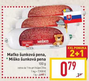 Aktuálnu zľavu na TAURIS Šunková pena Maťko / Miško 100 g zistíte jednoducho nastavením Strážca zliav .