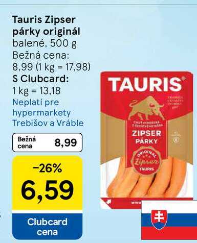 Aktuálnu zľavu na Tauris Zipser párky originál balené, 500 g zistíte jednoducho nastavením Strážca zliav .