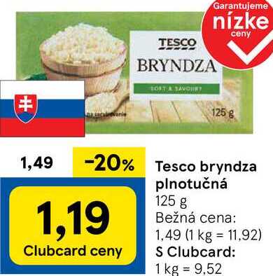 Aktuálnu zľavu na Tesco bryndza plnotučná, 125 g zistíte jednoducho nastavením Strážca zliav .