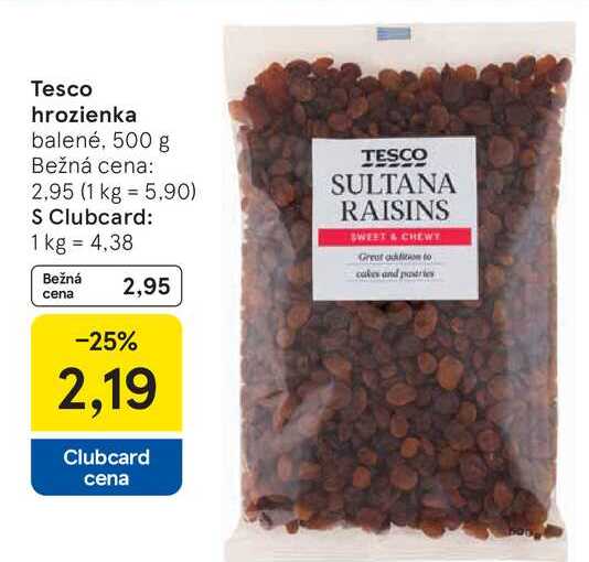Aktuálnu zľavu na Tesco hrozienka balené, 500 g zistíte jednoducho nastavením Strážca zliav .