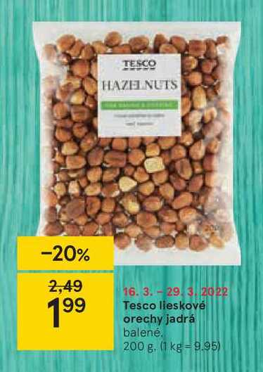 Aktuálnu zľavu na Tesco lieskové orechy jadrá, 200 g zistíte jednoducho nastavením Strážca zliav .