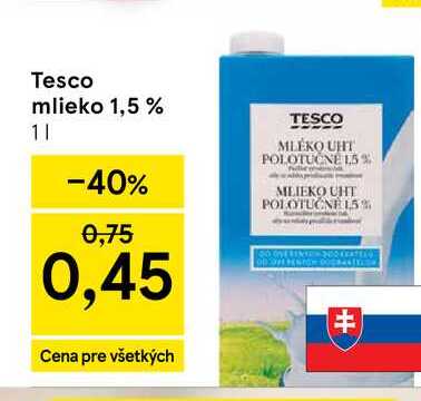 Aktuálnu zľavu na Tesco mlieko 1,5 % 1L zistíte jednoducho nastavením Strážca zliav .