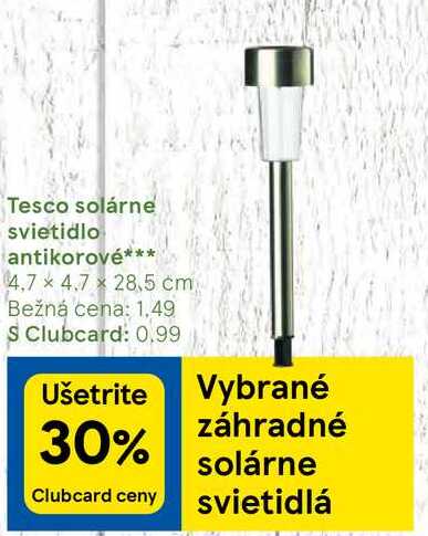 Aktuálnu zľavu na Tesco solárne svietidlo antikorové*** zistíte jednoducho nastavením Strážca zliav .