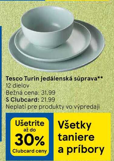 Aktuálnu zľavu na Tesco Turin jedálenská súprava, 12 dielov zistíte jednoducho nastavením Strážca zliav .