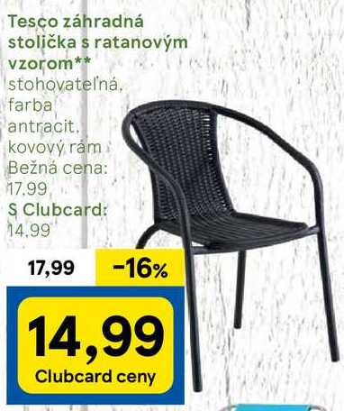 Aktuálnu zľavu na Tesco záhradná stolička s ratanovým vzorom zistíte jednoducho nastavením Strážca zliav .