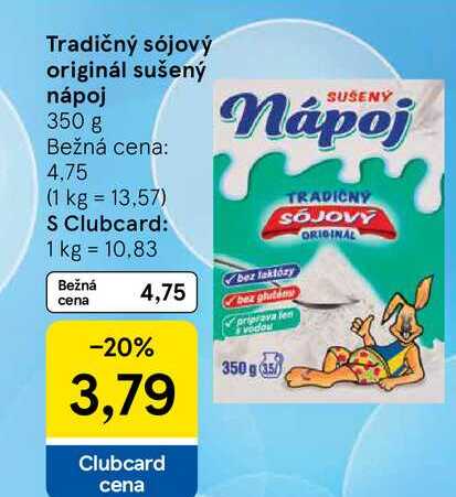 Aktuálnu zľavu na Tradičný sójový originál sušený nápoj 350 g zistíte jednoducho nastavením Strážca zliav .