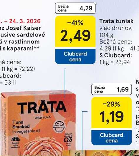 Aktuálnu zľavu na Trata tuniak viac druhov, 104g zistíte jednoducho nastavením Strážca zliav .
