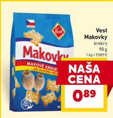 Aktuálnu zľavu na Vest Makovky krekry 90 g zistíte jednoducho nastavením Strážca zliav .