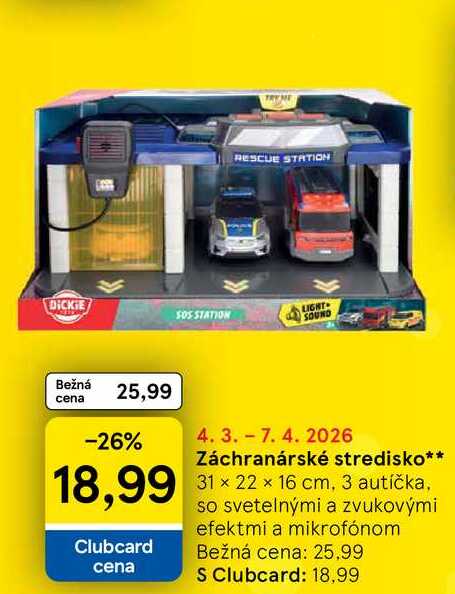 Aktuálnu zľavu na Záchranárské stredisko 31 x 22 x 16 cm, 3 autíčka, so svetelnými a zvukovými efektmi a mikrofónom zistíte jednoducho nastavením Strážca zliav .
