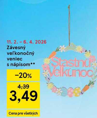 Aktuálnu zľavu na Závesný veľkonočný veniec s nápisom zistíte jednoducho nastavením Strážca zliav .