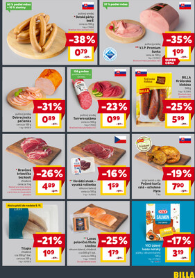 - BILLA Kráľovská klobása 580 g v akcii, so zľavou 25%, za 5,99 € .
